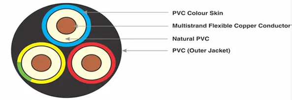 Note: Higher sizes of nominal cross-sectional area of conductor are also available on request. Any colours on specific request can be supplied. In case of multicore cable, the insulated core is laid up to from the core assembly. The inner core is coded with the numbers for easy identification as per national coding practices.
